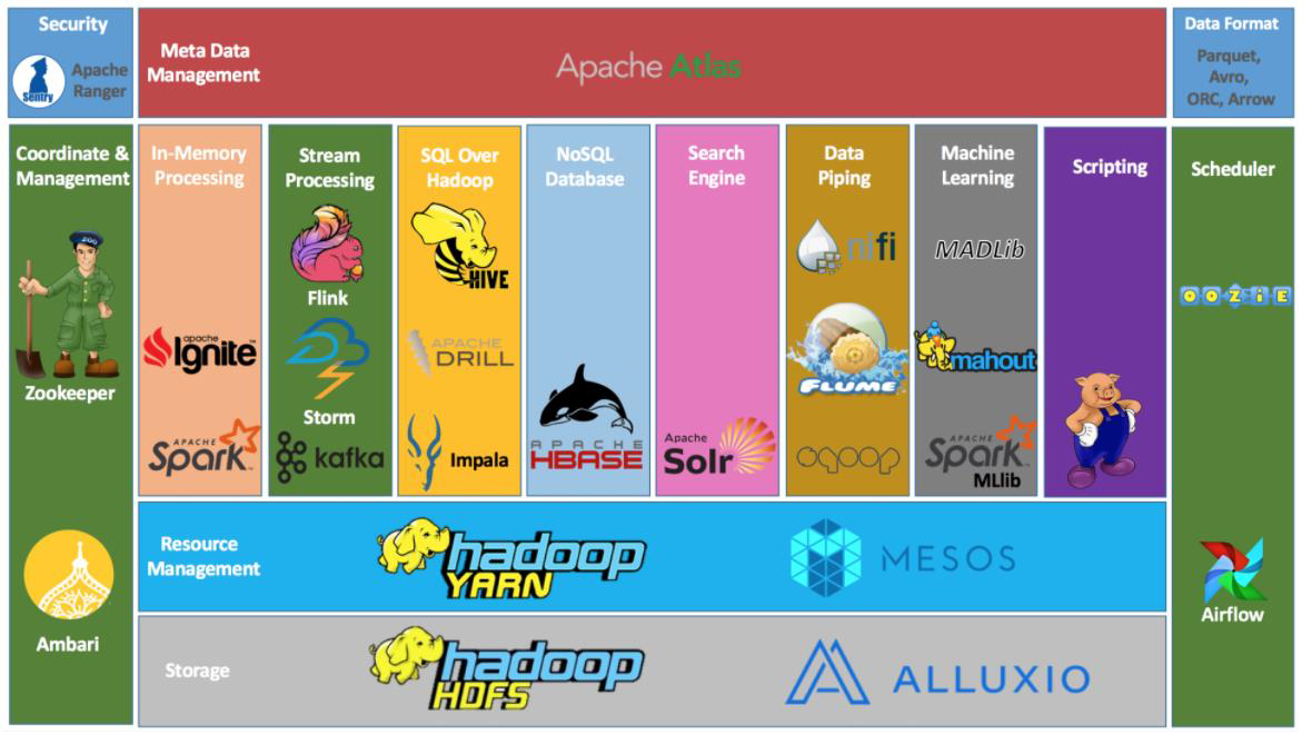 분산 처리 지원 hive, pig, sqoop(오라클 --> Hive), zookeeper( 분산 파일 시스템을 관리하는툴)