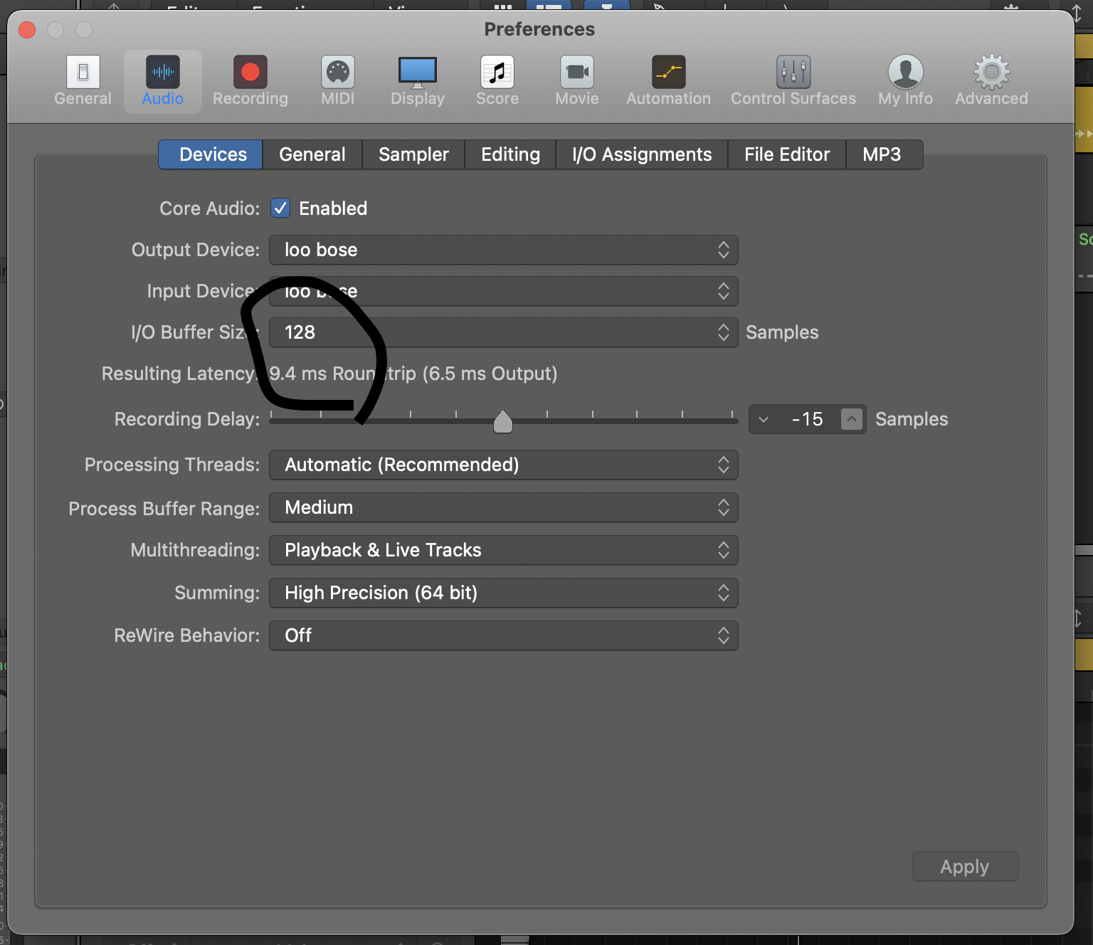 결론 : 버퍼 사이즈는 녹음할 때는 낮춘다 , 믹싱할 때는 높인다.