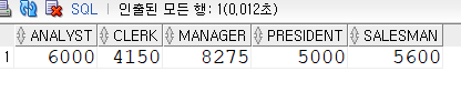 ⇒ JOB 이 'ANALYST' 이면 월급을 뽑고 ,나머지는 0이다) 를 SUM 하여 'ANALYST' 의 총 합을 구하고,