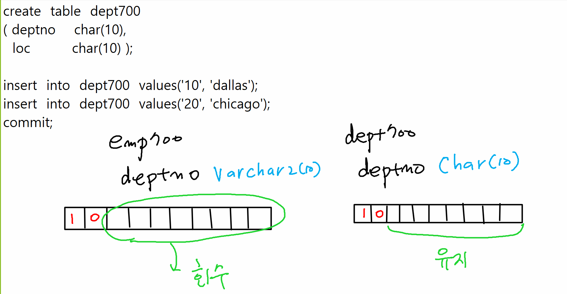 조금더 심도있게 CHAR 과 VARCHAR2 의 차이점을 살펴 보자면