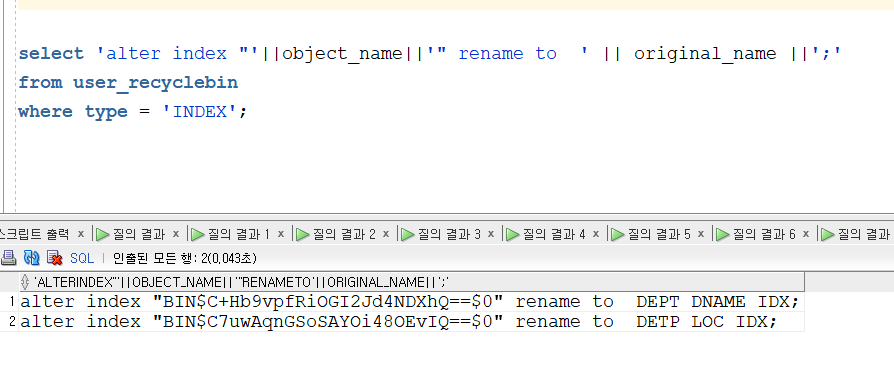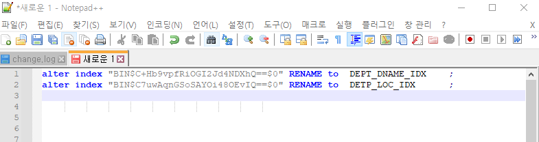 → 인덱스 이름이 휴지통으로 들어갔다 와서 이상하다